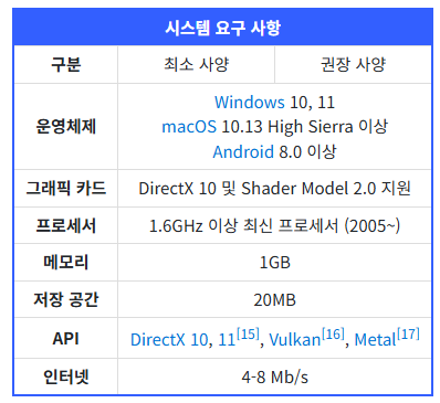 로블록스의 공식 시스템 요구 사양은 아래와 같습니다.(나무위키의 내용 캡쳐)