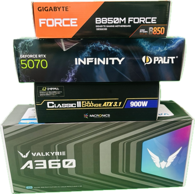 RYZEN7 7800X3D RTX 5070 D7 12GB B850M DDR5-6000 32GB (16GB*2) SSD 1TB 900W SILVER RTM-PLUS (black) / A360 |