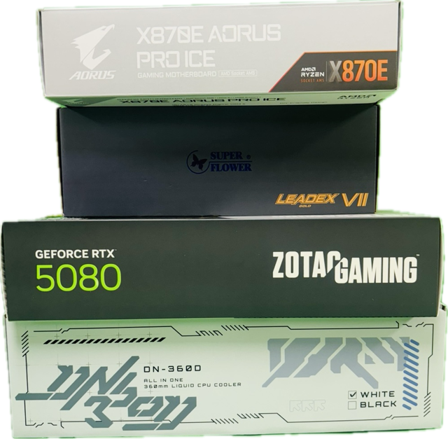 RYZEN7 9800X3D RTX 5080 OC D7 16GB X870E WIFI DDR5-6000 32GB (16GB*2) SSD 1TB 1000W GOLD RTM-PLUS (white) / DN360D |