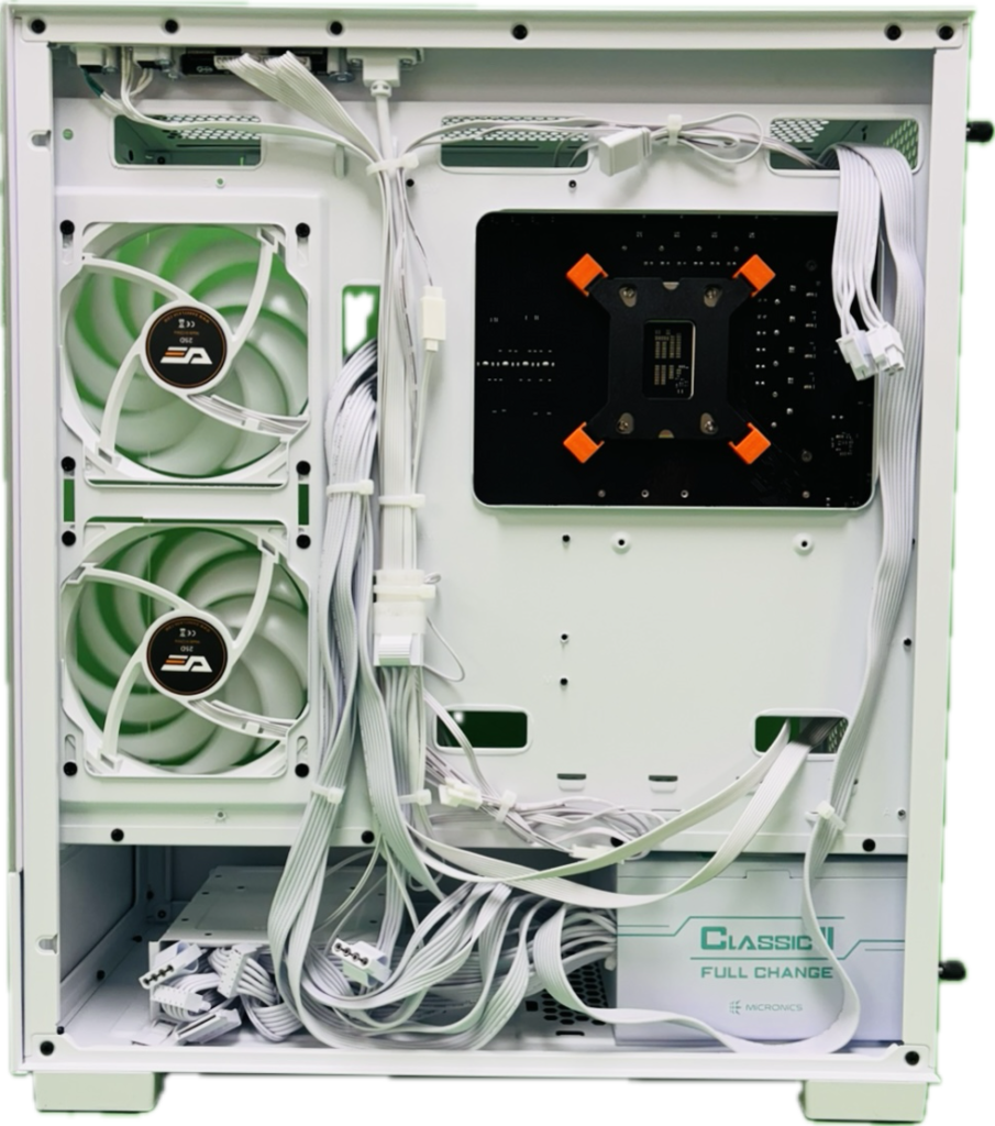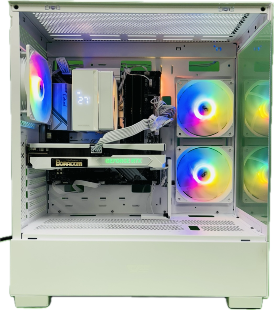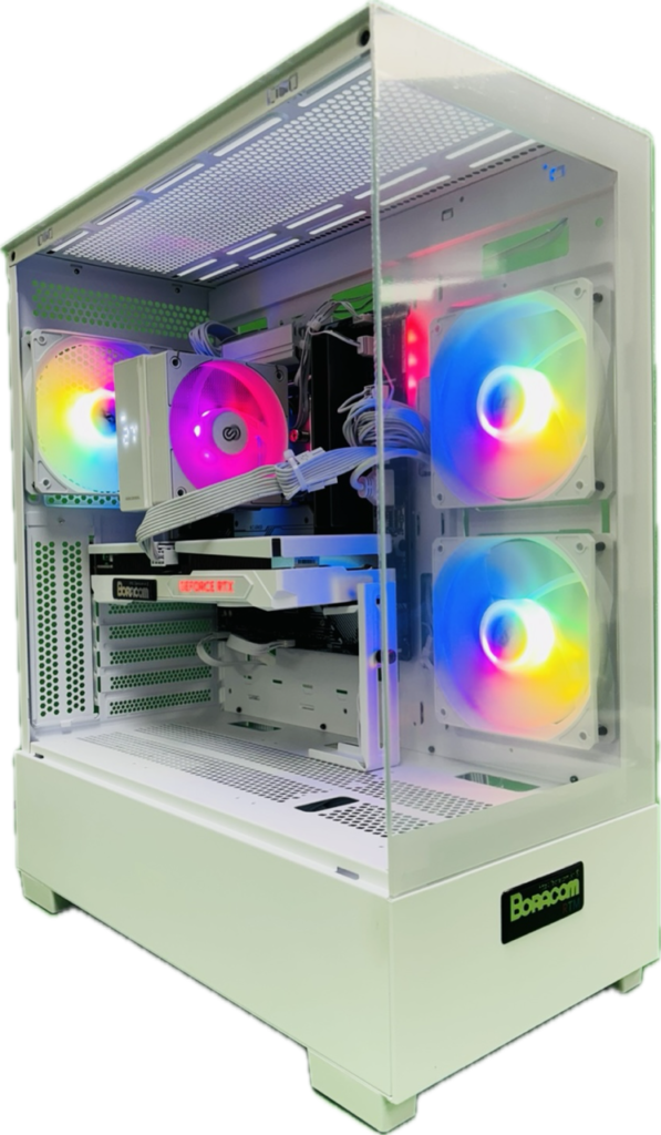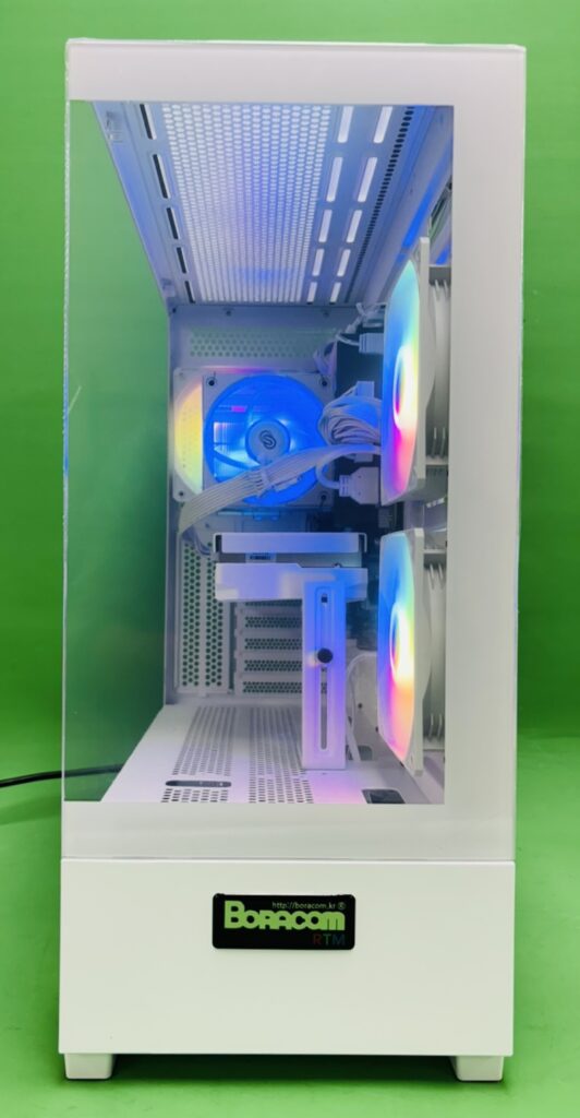 최종적으로 보라컴 RTM 화이트 튜닝이 적용되어 있습니다. 깔끔하고 세련된 화이트 감성 디자인과 효율적인 쿨링 설계로, 책상 위에서의 만족감은 물론 장시간 게임에도 조용하고 안정적인 환경을 제공합니다.
