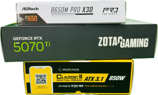 RYZEN7 7800X3D RTX 5070 Ti OC D7 16GB B650M DDR5-5600 32GB (16GB*2) SSD 1TB 850W GOLD RTM (black) / RT620 |
