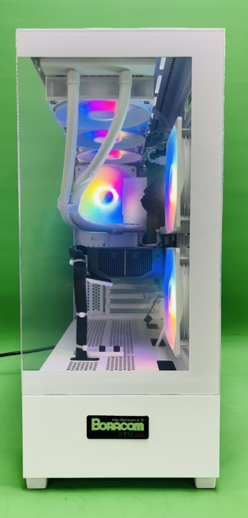 마지막으로 보라컴 RTM-PLUS 튜닝을 적용했습니다. 발열 관리에 최적화된 내부 설계와 정숙한 동작, 그리고 작업 공간의 분위기를 살려주는 깔끔한 화이트 감성까지 더해져, 성능과 완성도를 모두 만족시키는 워크스테이션으로 완성했습니다.