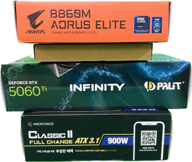 Ultra7 265K RTX 5060 Ti D7 16GB B860M DDR5-6000 64GB (32GB*2) SSD 1TB (*2개) + M.2 탈착식 하드랙 900W SILVER RTM-PLUS(black) / AQUA360 |