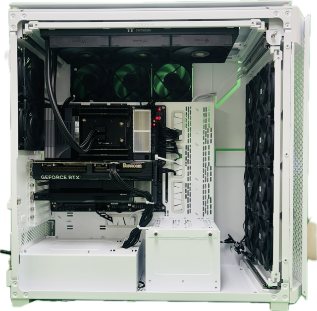 최종적으로 보라컴 RTM-PLUS 벨로시엄 튜닝을 적용했습니다. 고발열 환경을 고려한 공기 흐름 설계와 정밀한 쿨링 튜닝으로, 장시간 연산 시에도 온도와 소음을 안정적으로 제어합니다.