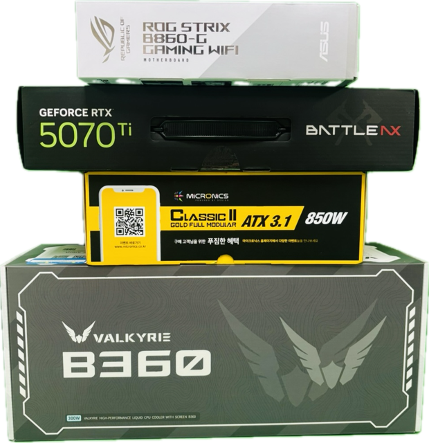 Ultra7 265K RTX 5070 Ti EX D7 16GB B860 WIFI DDR5-5600 32GB SSD 1TB 850W GOLD RTM-PLUS (black) / B360 |