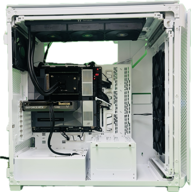 최종적으로 보라컴 RTM-PLUS 블랙 튜닝을 적용했습니다. 내부 공기 흐름과 발열 해소를 고려한 설계로, 장시간 연산 환경에서도 안정적인 온도 유지와 정숙한 시스템 구동을 동시에 만족시킵니다.