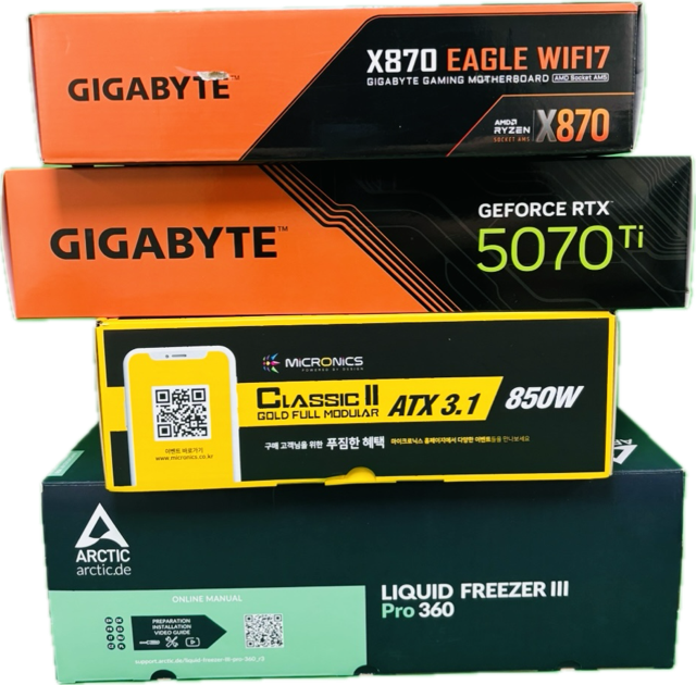 RYZEN9 9950X RTX 5070 Ti OC D7 16GB X870 WIFI DDR5-6000 32GB (16GB*2) SSD 1TB 850W GOLD RTM-PLUS (black) / FREE360 |