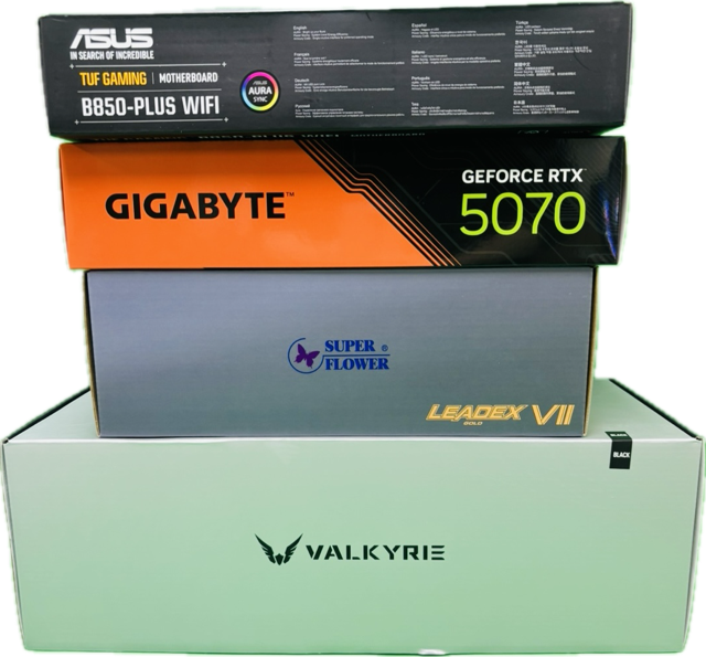 RYZEN7 9800X3D RTX 5070 OC D7 12GB B850 WIFI DDR5-6000 32GB (16GB*2) SSD 1TB 1000W GOLD RTM-PLUS (black) / GL360 |