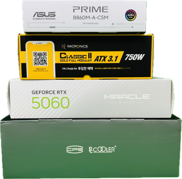 Ultra9 285K RTX 5060 OC D7 8GB B860M DDR5-5600 64GB (32GB*2) SSD 1TB 750W GOLD RTM-PLUS(black) / DC360 |